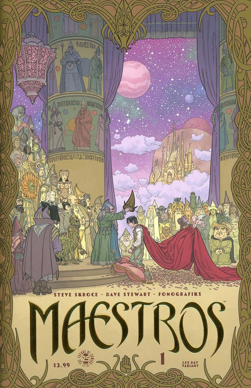 “The Maestro and his entire royal family have been murdered. Now, his banished son from Earth will inherit the Wizard King’s throne along with a spell that turns its user into GOD. With enemies everywhere, will this Orlando-born millennial be able to keep his new magic kingdom? From STEVE SKROCE, the storyboard artist of The Matrix trilogy, the artist and co-creator of WE STAND ON GUARD and Doc Frankenstein, the writer / artist of Wolverine, and the artist of Amazing Spider-Man and ALAN MOORE’s YOUNGBLOOD.” (Image)